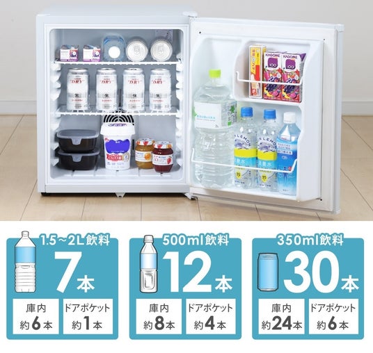 冷凍庫をなくすことで48Lの小型モデルにも関わらず庫内は広々最大奥行25.5cmです。