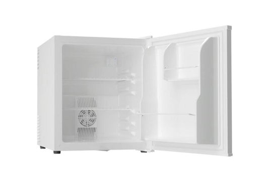 既に持っている冷蔵庫にプラスもう一台としての使用を想定し、冷凍庫をあえて無くし、省スペースでも設置できるコンパクトサイズを実現しました。横幅43cm×奥行48cm×高さ51cmながら、ペットボトル500mlを最大12本収容できる※たっぷり容量48Lです。ペルチェ式を採用しているため、冷却モーターによる振動や騒音が少なく、寝室などにもお使いいただけます。