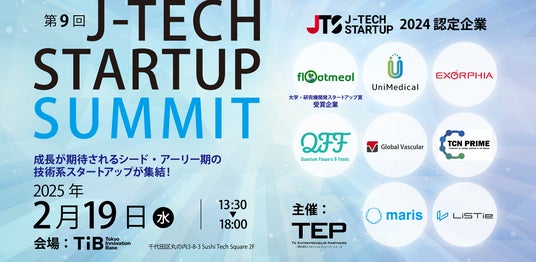 また2025年2月19日(水)には、Tokyo Innovation Base(有楽町)にて、認定企業のプレゼンやパネルディスカッションを行う「第9回 J-TECH STARTUP SUMMIT」を開催する予定で、本日より一般参加申し込みを開始いたします。