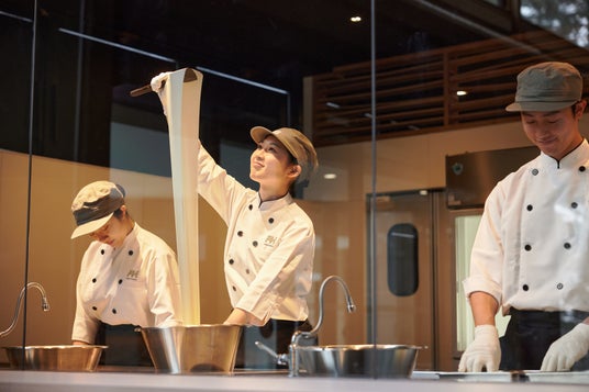 北海道の大地を感じるネイチャーワンダーリゾート「星野リゾート トマム」では、2024年12月17日に森のレストラン「ニニヌプリ」がリニューアルオープンしました。店内には新たに、チーズ作りの実演をするライブスタジオと、トマム牛乳(*1)のソフトクリームにさまざまなトッピングをして楽しめるコーナーが誕生。さらに、店内にあるピザ窯では新たに、ファーム星野のチーズとジンギスカンをのせたピッツァを焼き上げます。「旅×農業」をコンセプトにした循環型農業プロジェクト「ファーム星野」の製品ができるまでのストーリーを感じる空間で、その乳製品を使ったメニューを提供します。
