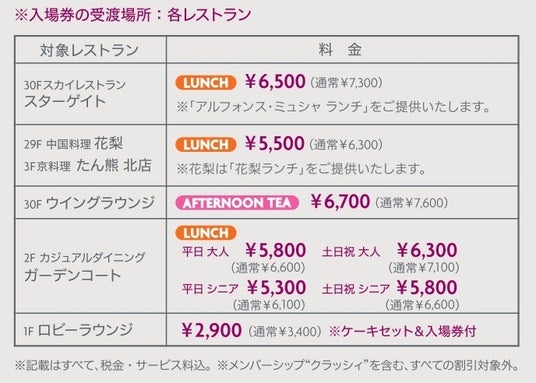 ◆30Fスカイレストラン「スターゲイト」「ミュシャ展~アール・ヌーヴォーの女神たち~」コラボレーションランチコース アルフォンス・ミュシャランチ(¥5,500税サ込)