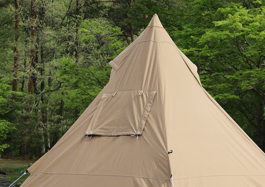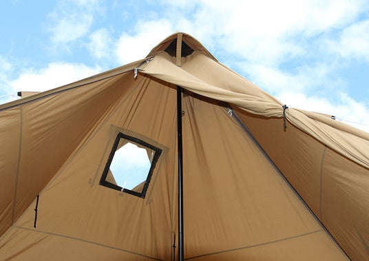 「サーカスTC+ チムニーウォール」は、多くの方にご愛用頂いている「サーカスTC+」テントをベースに、外吸気式薪ストーブを快適に利用できるようアップデートした専用モデルです。夏はホール部分をクリア窓に変更できる機能を設け、1年中快適にご利用いただけます。抜群の遮光性と通気性を持ち、夏は木陰のように涼しく、冬は暖気を逃しません。1人でも2人でもちょうどいい絶妙なサイズ感。素材には結露しにくい綿混紡素材を採用しました。