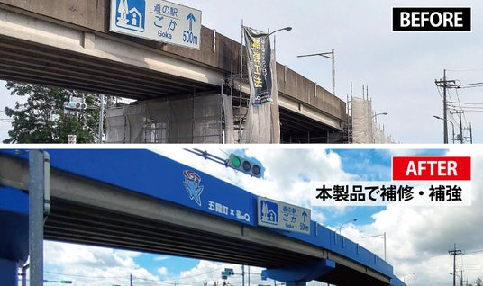 五霞町と(株)染めQテクノロジィの官民連携により、補強工法を用いて跨道橋の長寿命化が実現しました。