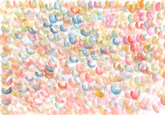 そんな彼女にとって、アクリル絵の具との出会いは幸せの始まりであった。絵を描くことが日課となり、そのカラフルで心踊る表現は、実際彼女に見えている風景であり、ほとんど言葉を発しない彼女の言葉なのである。