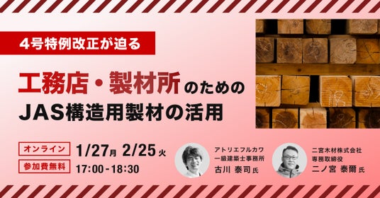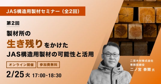 第1回 工務店の信頼を高める-JAS構造用製材がもたらす品質日時:2025年1月27日(月)17:00-18:30