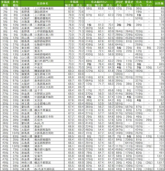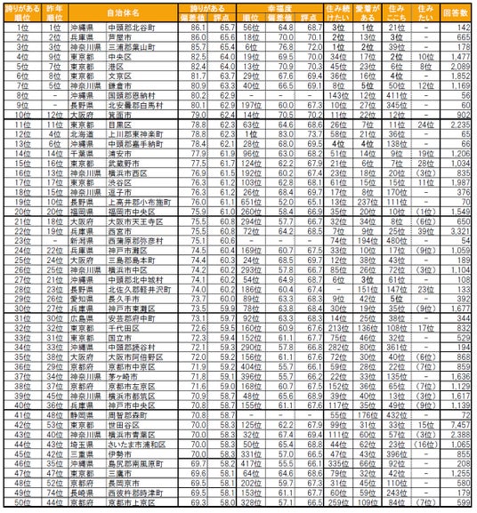 街の幸福度(自治体)ランキング<全国版>1~50位