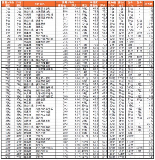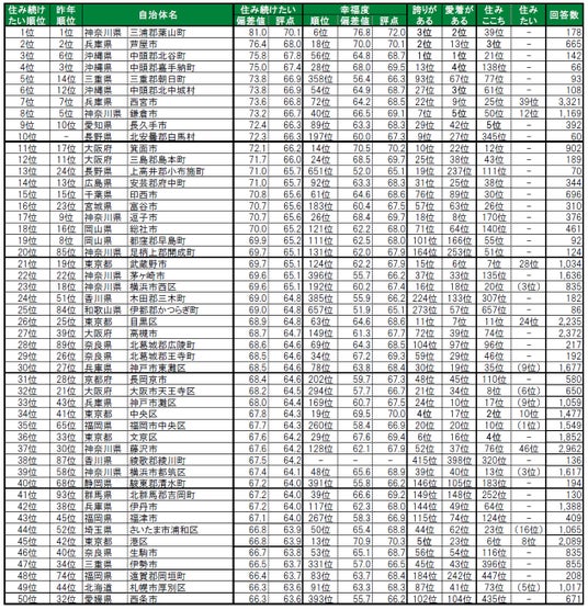 住み続けたい街(自治体)ランキング<全国版>1~50位