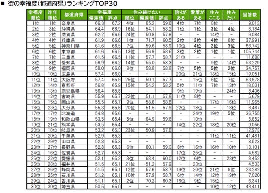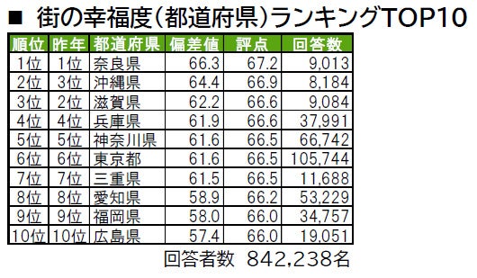 ■街の幸福度(都道府県)トップは、4年連続で奈良県
