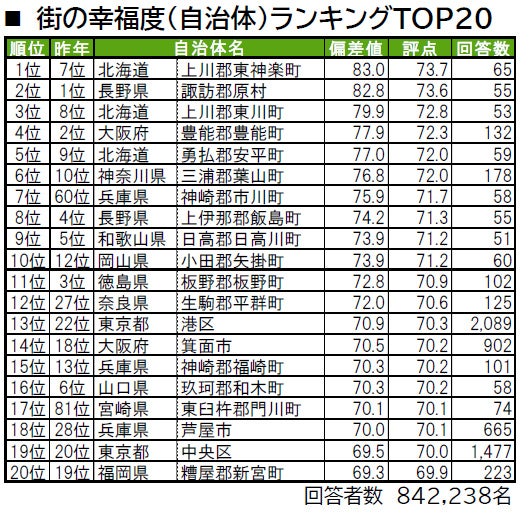 ■街の幸福度(自治体)トップは、昨年7位の北海道上川郡東神楽町