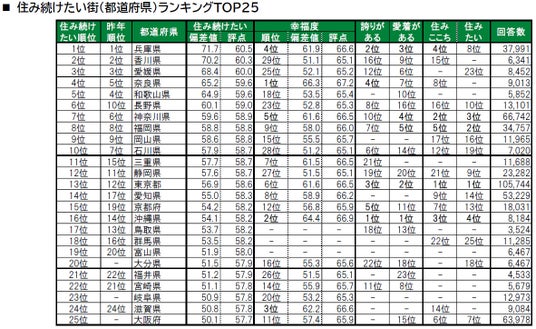 街の幸福度<TOP30>&住み続けたい街<TOP25> 都道府県ランキング