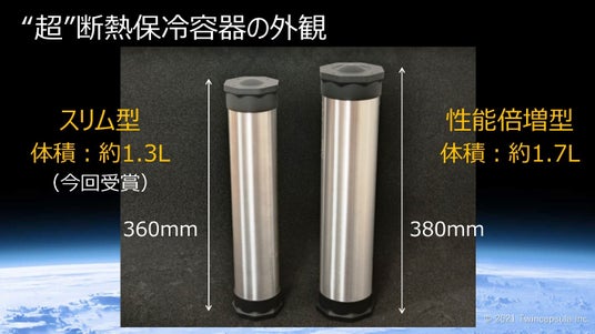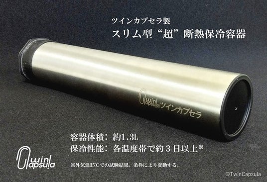 ツインカプセラは、JAXAのHTV搭載小型回収カプセルプロジェクトでの技術開発成果をベースとし、2021年の創業以降、茨城県の「次世代技術活用ビジネスイノベーション創出事業」や「いばらきチャレンジ基金」、広沢技術振興財団の「ものづくり技術助成事業」などを通じて小型かつ超高性能な断熱保冷容器の開発を進め、2023年10月に「スリム型”超”断熱保冷容器β版」として有償提供を開始しております。第5回いばらきイノベーションアワードでは、この製品について応募し、ご評価を頂きました。