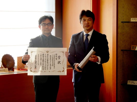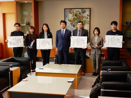 茨城県庁での表彰式の様子(大井川知事との記念撮影)