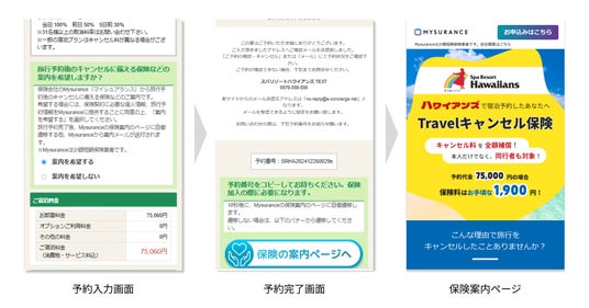 そこで、Mysuranceの「Travelキャンセル保険」を公式Web予約の導線上で案内することで、お客さまが安心してご予約いただける環境を整えるとともに、宿泊日当日までの不安を軽減し、旅の前段階からサービス向上につなげたいと考えております。