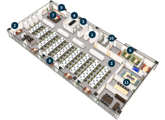 災害に備えるためには、オフィスのつくりそのもの、つまりオフィスレイアウトの段階から計画することが重要です。当社は長年蓄積してきた豊富なノウハウから、「減災」のためのナレッジを駆使してオフィス空間を構築します。下記は、地震に強いオフィスレイアウトのポイントをまとめたものです。このような知見をしっかりと活かし、お客様のオフィスづくりを支援します。