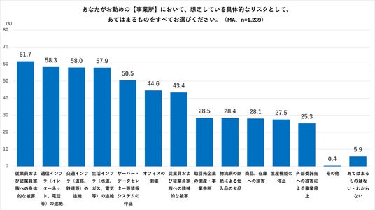 ・具体的なリスクは「従業員及び従業員家族への身体的な被害」が最多。インフラへの影響も高い結果に
