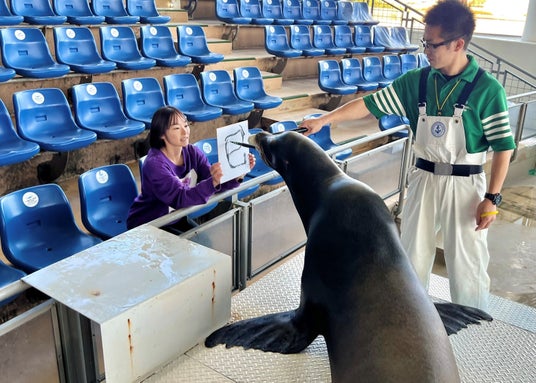 アシカによる書初めパフォーマンス