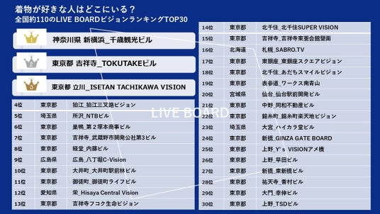 ・2023年12月19日配信 "ブランド好き"はどこにいる? 全国のLIVE BOARD屋外ビジョンランキングTOP30を発表