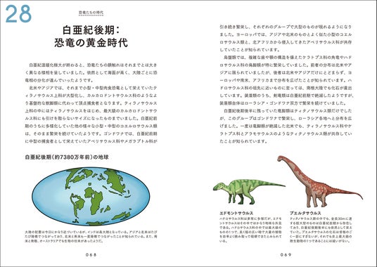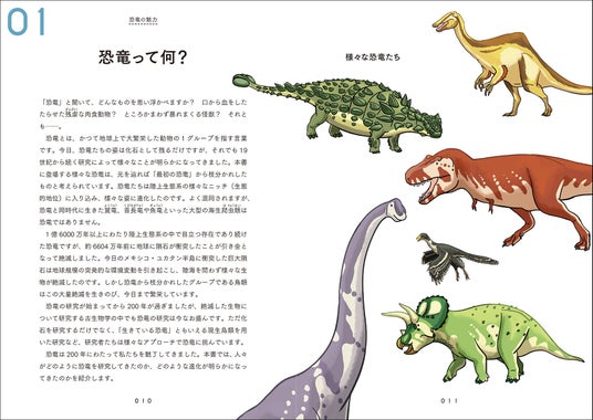 研究史や研究手法、恐竜が生きた時代、系統ごとの生態について網羅的に紹介し、恐竜をより深く楽しむため基本的な科学知識を詰め込みました。