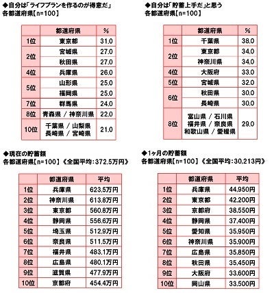 ◆“ライフプラン作りが得意”1位は「東京都」、“貯蓄上手”1位は「千葉県」
