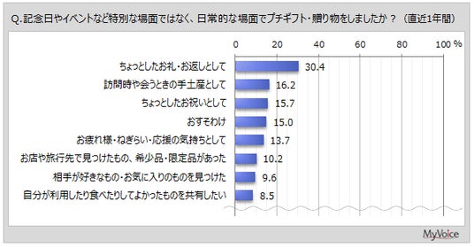 ちょっとしたお礼やおすそ分けなど、日常的なプチギフト・贈り物をどのような場面でしたかを聞きました。