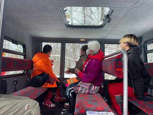 15人乗りのキャビンが搭載された圧雪車で、林道の雪を豪快にかき分けながら進むツアー。天元台ロープウェイ山頂側の高原駅近くを出発し、この企画でしか行けない雪原を目指す。道中では置賜盆地を一望できる「パノラマ展望台」や、コースのシンボルとされている「ミズナラの巨木」といったビューポイントに立ち寄る。目的地ではスノーシューを履いて雪原の散策を楽しんでから、淹れたての特製コーヒーなどを味わう。