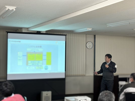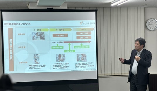 プラスエンジニアリング株式会社 取締役 仙台事業所長 浅野 謙一郎様による技能向上施策の事例紹介の様子