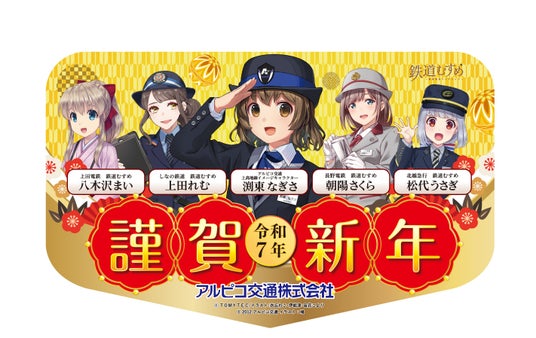 アルピコホールディングス株式会社の連結子会社であるアルピコ交通株式会社(松本市井川城2-1-1 代表取締役社長 小林史成)は、信越地域の鉄道事業者(長野電鉄株式会社、上田電鉄株式会社、北越急行株式会社及びしなの鉄道株式会社)と連携し、各社のオリジナルキャラクターをデザインした「謹賀新年ヘッドマーク」(以下、HM)を、各社の鉄道車両に掲出いたします。