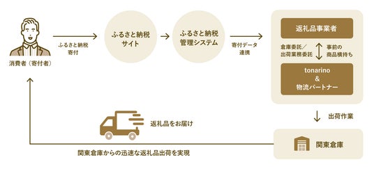 「アスチャクふるさと納税」は、平日午前10時までの決済完了の寄付申し込みに対して、当日中にお礼の品の出荷手続きを行い、tonarinoが提携する関東近郊の倉庫で自治体からお預かりしているお礼の品を、最短で翌日にお届けするふるさと納税サイトです。