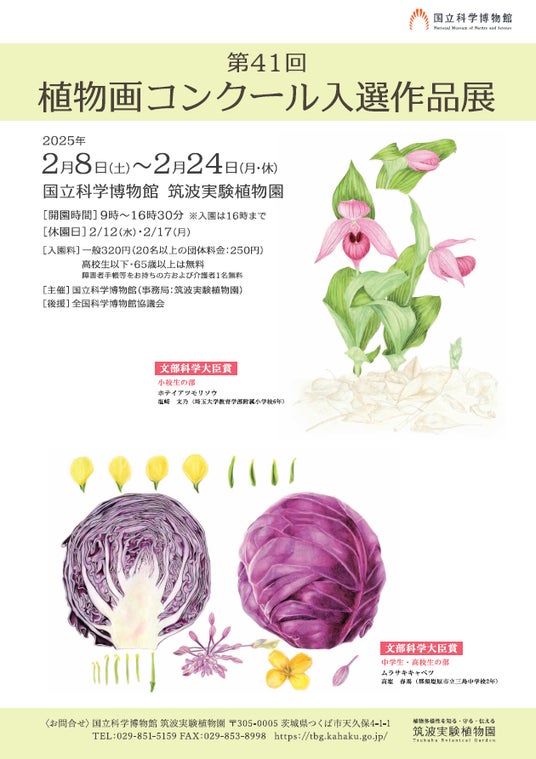 入選作品展を筑波実験植物園にて令和7年2月8日(土)から2月24日(月・休)、上野本館にて令和7年7月1日(火)から7月21日(月・休)、附属自然教育園にて8月2日(土)から9月15日(月・休)に行う予定です。