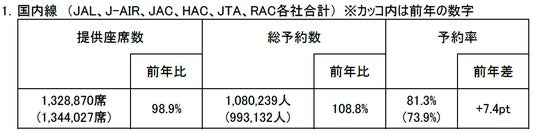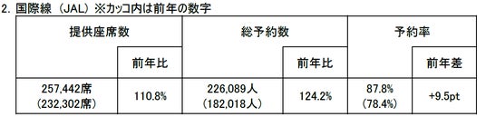 詳細につきましては、添付別紙JALグループ各社ご予約状況をご覧ください。