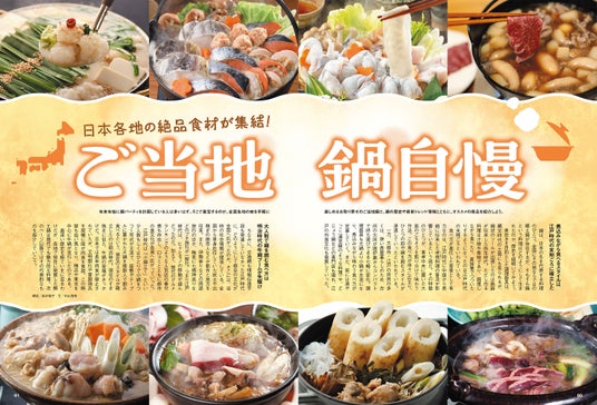 「福岡県・もつ鍋」「山形県・芋煮鍋」「秋田県・きりたんぽ鍋」「兵庫県・ぼたん鍋」「茨城県・あんこう鍋」