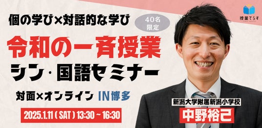 株式会社NIJIN(本社:東京都江東区、代表取締役:星野達郎)が運営する教員研修プラットフォーム『授業てらす』は、全国の小中学校教員を対象に、中野裕己先生と国語の学びについて考える対面とオンラインのハイブリッドのセミナー「令和の一斉授業!シン・国語セミナー~個の学び×協働的な学び~」を、2025年1月11日(土)に開催いたします。