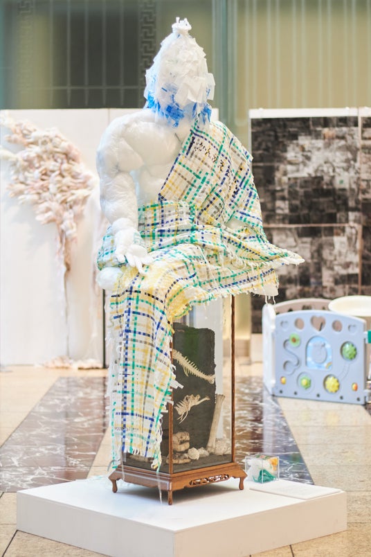 既製品や通貨、生物、CG、AIなどを題材にするコンセプチュアルアーティスト。本作品はカンボジアで体験した劣悪な衛生環境から着想を得て、先進国の消費・廃棄問題に焦点を当て制作を行った。