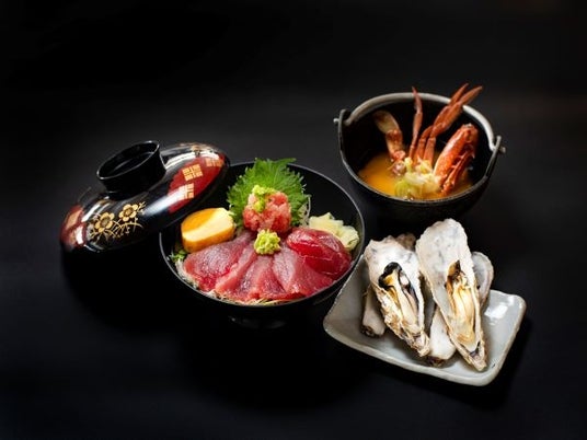 塩竃の中でも創業80余年を超える笹かまぼこの老舗店です。マグロ丼&蒸し牡蠣+笹かま+笹かまアヒージョ、日本酒とのマリアージュでお楽しみください。