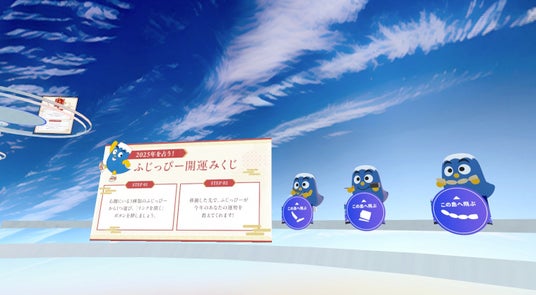 静岡県のマスコットキャラクター「ふじっぴー」が、2025年の運勢を占う「ふじっぴー開運みくじ」を用意しました。複数のふじっぴーの中から一つを選ぶと、その先におみくじが登場します。おみくじは全3種類。それぞれのふじっぴーがどんなコメントをくれるのかお楽しみください。
