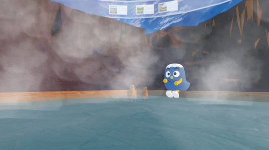 火口側には足湯を設置し、アバター同士が交流できるスペースを用意しました。遠く離れてお正月を一緒に過ごせない家族や友人とも、仮想空間で合流し、会話を楽しむことができます。