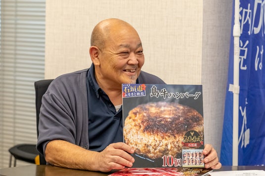 ひと月予約300件「石垣 島牛ハンバーグ 手ごね100グラム 10個」を紹介する八重山食肉センター部長 幸喜俊明さん
