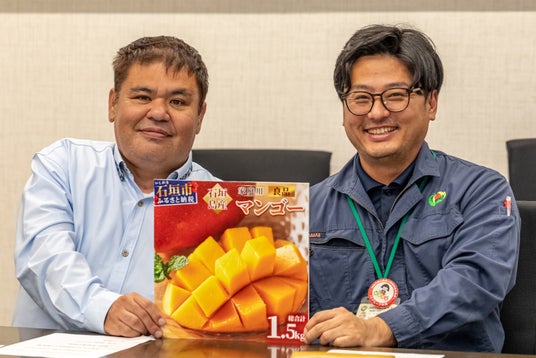 マンゴー生産部会長 伊志嶺雅也さん(左)とJAおきなわ 八重山地区営農振興センター 山田泰大さん(右)