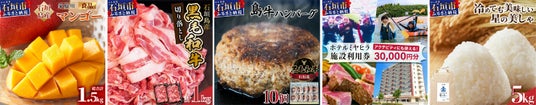 > YC-4 石垣島産 黒毛和牛 切り落とし 1kg(500g×2)> OTI-01 飛行機、ホテルが、ワンセット。観光・石垣パッケージ旅行補助券> YC-7 行列ができる肉匠 丸富 石垣島 島牛ハンバーグ(手ごね100グラム10個)> MY-2 南の美ら花ホテルミヤヒラ 施設利用券(30000円分)