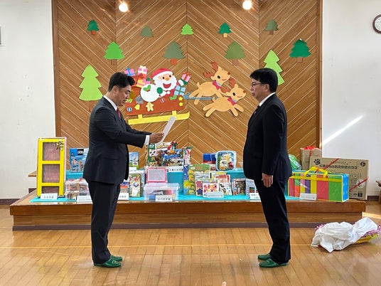 NECプラットフォームズ白石事業所は、2024年12月24日に宮城県白石市内にあるすべての保育園・幼稚園12施設へ、おままごとセットやブロックなどのプレゼントを寄贈しました。