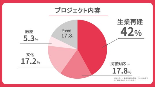 READYFORにおいて2024年に公開された能登半島地震および豪雨被害に関連するクラウドファンディングプロジェクトのうち、地域の「生業再建」に関わるプロジェクトは全体の42%を占め、最多となりました。