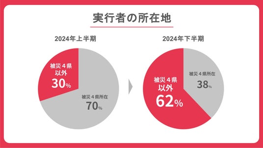 一方、下半期はその割合が38%となり、残りの62%は被災4県以外のエリアに所在する実行者によるプロジェクトでした。