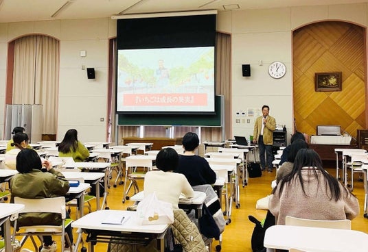ブランド苺「ヒルズいちご」を生産するいちご農家、株式会社山元ヒルズファーム(所在地:宮城県亘理郡山元町、代表取締役:小林幸男)は、ブルーベリーの収穫後損失を減らすために、尚絅学院大学(宮城県名取市)とブルーベリーの加工商品の共同開発プロジェクトをスタートします。2024年11月25日、尚絅学院大学において代表取締役 小林幸男が講義を行いました。
