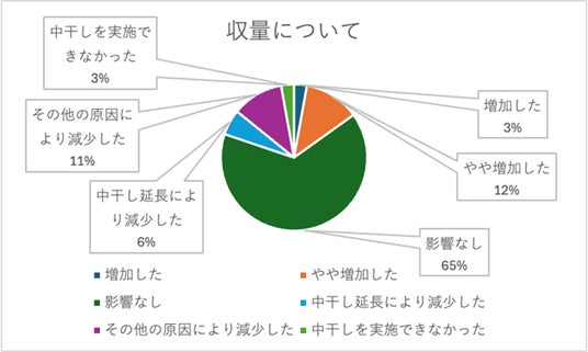 2024年度稲作コンソーシアムにて中干し延長に取り組んでいただいた農家さんを対象にアンケートを行い、約8割の水田農家が、中干し延長そのものが収量に影響することがないと回答。