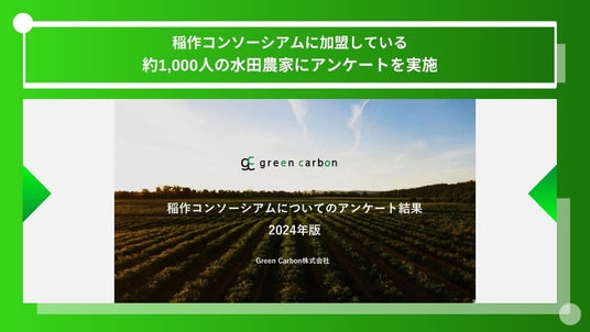 ネイチャーベースのカーボンクレジット創出販売事業を展開するGreen Carbon株式会社(代表取締役:大北潤、以下Green Carbon(読み:グリーンカーボン))は、稲作コンソーシアムに加盟している約1,000人の水田農家に、水田の中干し期間延長による収量・品質への影響についてアンケートを実施し、収量・品質共に9割以上が中干し期間延長による影響はないという結果になりました。本アンケート結果は無料公開しています。