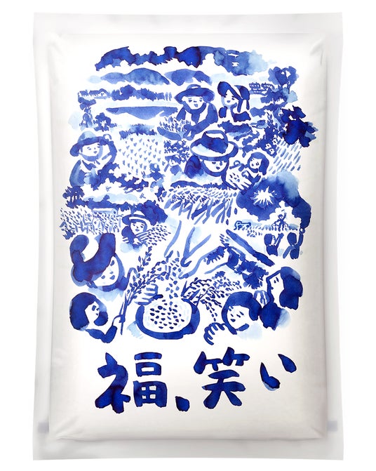 寄藤文平さんの、「お米に支えられ、お米とともに育まれてきた世界を伝える絵」は、温かみのある素朴なタッチで、米への敬意と感謝を表現しています。どこで見ても「福、笑い」とすぐに認識でき、見る人の心に温かい気持ちをお届けします。さらに、このパッケージデザインは、「日本パッケージデザイン大賞2023 食品部門」において見事、銀賞を受賞。その卓越したデザイン性が高く評価されました。
