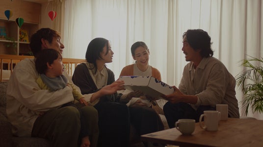 2024年12月9日(月)に公開された「女子大学生篇」は、一人暮らしを始めて8カ月の女子大学生のひとコマ。一人暮らしを始め、実家の大切さに気づいた主人公は、帰省の際、「福、笑い」を贈ることで普段両親に言葉で伝えられない感謝を表現しています。家族でおにぎりを食べるシーンが印象的です。