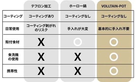 ノンコーティングのステンレス仕様がVOLLTAINポットの最大の特徴!
