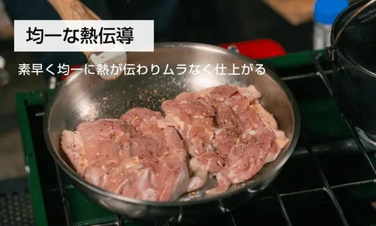 ノンコーティング、三層ステンレス製で家庭での料理もキャンプ飯も汎用性抜群のフライパン鍋セット