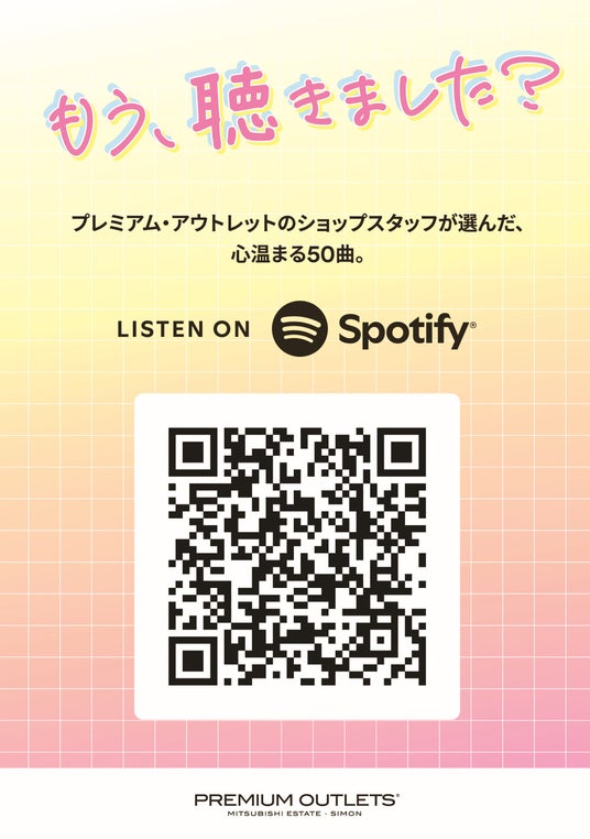 三菱地所・サイモン株式会社(本社:東京都千代田区/代表取締役社長:山岸正紀、以下 三菱地所・サイモン)は、冬のお出かけをより楽しく、そして温かくするドライブ曲50曲をセレクトした、プレミアム・アウトレットオリジナルのプレイリスト「心温まるドライブ曲♪プレミアム・アウトレットへ!」を12月26日(木)10時よりオーディオストリーミングサービス「Spotify」で配信を開始します。